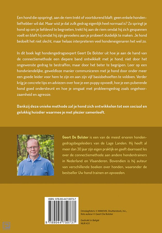 In dit boek legt hondengedragsexpert Geert De Bolster uit hoe je aan de hand van de connectiemethode een diepere band ontwikkelt met je hond, niet door het ongewenst gedrag te bestraffen, maar door het beter te begrijpen.