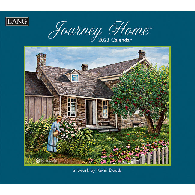 Amerikaanse Lang kalender. LANG-wandkalenders hebben maandelijkse full colour afbeeldingen, elegant linnen reliëfpapier en een koperen oogje om op te hangen.