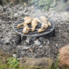 Metalen kampvuur rooster. Zorgt voor afstand tussen pan en kampvuur of houtskolen. Geschikt voor zware pannen.