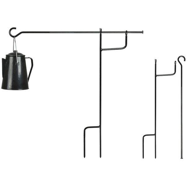 Geen tripod bij de hand? Geen probleem met deze kampvuur standaard. Hang er een pot of niet te zware pan of ketel mee boven het vuur.