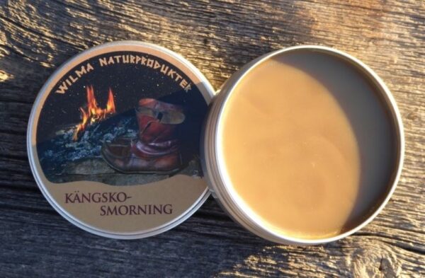 Wilma’s natural products are made in the forest region of Swedish Lapland utilising the old knowledge and techniques that have been used for centuries by the forest people who have lived and worked there. A woodsman working all day in the forest in meter deep snow had to have waterproof shoes. Before the days of synthetic and winter rubber boots, leather shoes had to be treated with to keep water tight.