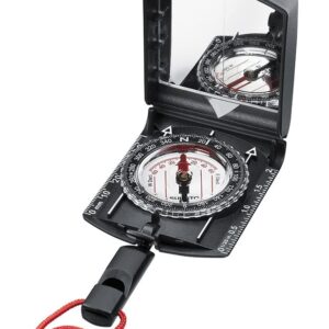 – De karabijnhaak beschikt over een bolkompas en thermometer.