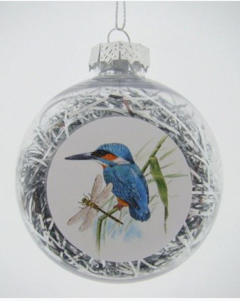 Mooie glinsterende kerstbal met de afbeelding van een ijsvogel. Gemaakt van kunststof, kan dus heel wat meer hebben dan een glazen bol.