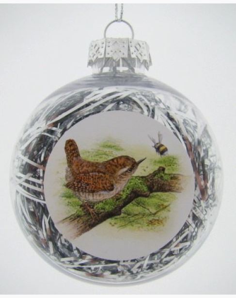 Mooie glinsterende kerstbal met de afbeelding van een winterkoning. Gemaakt van kunststof, kan dus heel wat meer hebben dan een glazen bol.