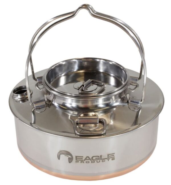 Eagle Products 0,7L RVS ketel met verkoperde onderkant. Dit is de mooiste outdoor ketel die we kennen. Uitgevoerd met twee hengsels voor meer stabiliteit. Wanneer niet in gebruik kunnen deze hengsels neergeklapt rammelvrij vastgezet worden.