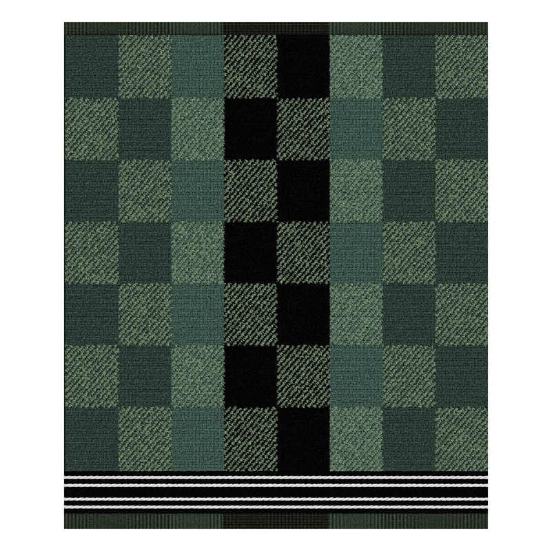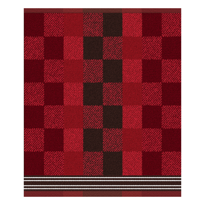 Het dessin heeft een print van de klassieke houthakkers ruit waarbij het is afgewerkt met een luxe jacquard geweven border.