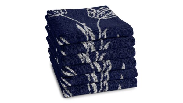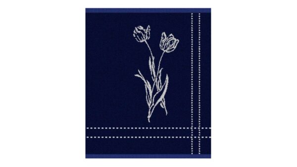 DDDDD keukendoek Lisse. Waar denk je gelijk aan bij ‘Lisse’? Aan tulpen natuurlijk! Mooie blauwe keukendoek met witte tulpen.