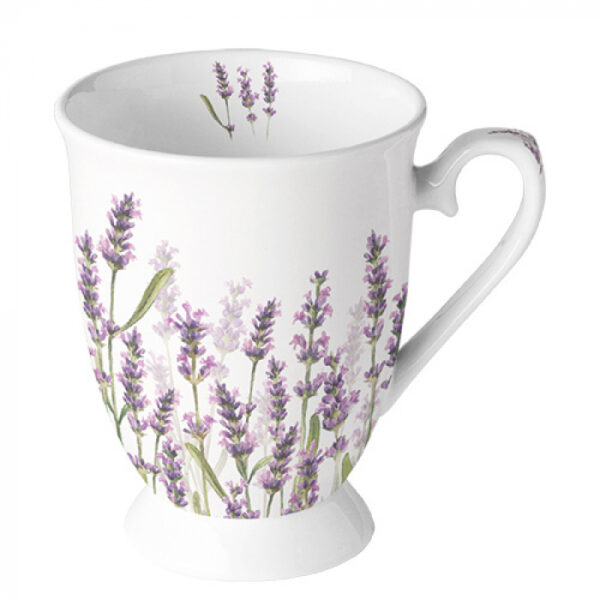 Sierlijk porseleinen kopje met een afbeelding met lavendel. Inhoud 0.25 L Materiaal porselein Afmeting Ø 7,5 – H 10 cm