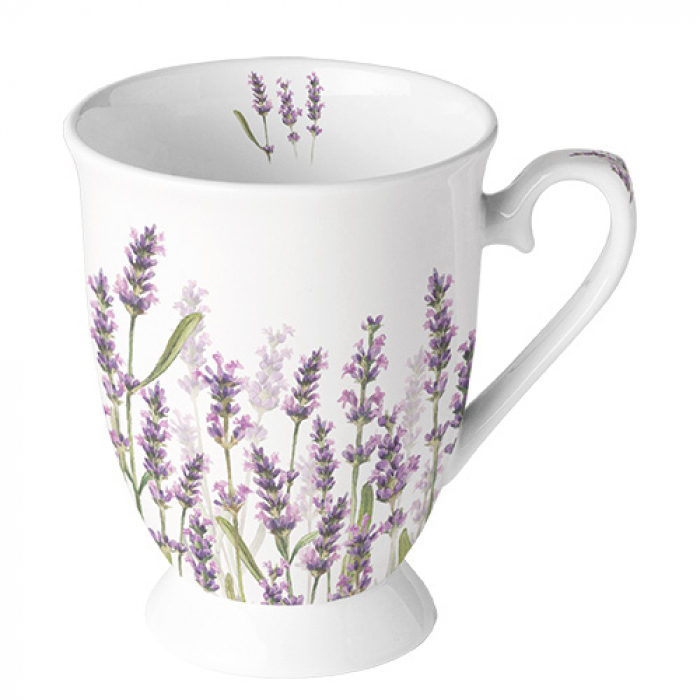 Sierlijk porseleinen kopje met een afbeelding met lavendel.