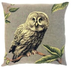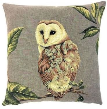 Gobelin sierkussen met afbeelding van een kerkuil. De afbeelding is geweven, niet bedrukt. Afmeting 45 x 45 cm Inclusief vulling