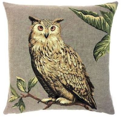 Gobelin kussen in de maat 45 x 45cm met de afbeelding van een Oehoe. De afbeelding is ingeweven, niet bedrukt. Inclusief vulling.