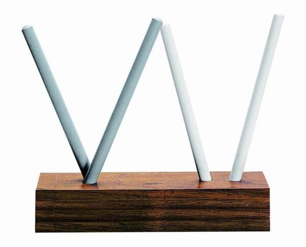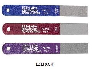 Lansky de luxe V-slijper. Heeft twee middelfijne keramische slijpstaven en twee fijne. Ze staan onder de juiste hoek wat het slijpen veel eenvoudiger maakt.