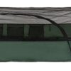 De Lawson Hammock is een mooi uitgewerkt slaapsysteem bestaande uit een hangmat, klamboe / muskietennet en dak. Zelfs ontoegankelijk voor mieren! Ideaal bij het opslaan van een bivak in slecht terrein. Een slaapmat is niet nodig. De mat wordt breed gehouden door 2 spreiders.
