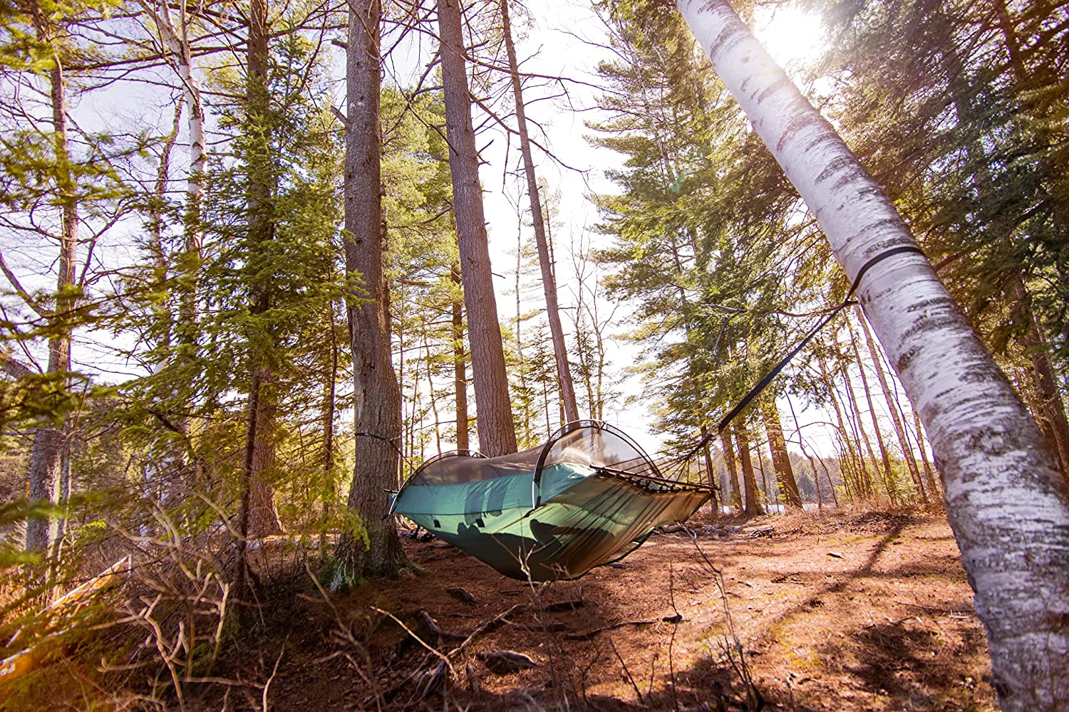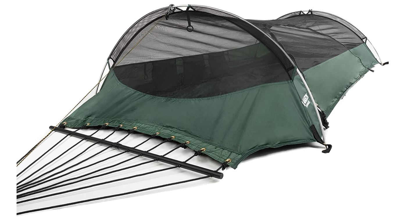 Voor de outdoor-enthousiasteling of voor mensen die de voorkeur geven aan een meer verfijnde en technologische look biedt deze hangmat het beste in materiaal en functie. Het beschikt over een tentachtige constructie, een klamboe en een regenhoes. Het muskietennet is gemakkelijk te openen en heeft veel vakken en haken aan de binnenkant.