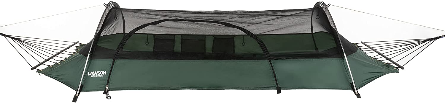 Het belangrijkste kenmerk dat de Lawson-hangmat onderscheidt van zijn kampeerconcurrenten zoals ENO, Hennessy en Amazonas is de dual-mode-functionaliteit: de Lawson is ontworpen om te worden gebruikt als hangende hangmat (d.w.z. in plaats van een traditionele tent) of op de grond als bivy-tent.
