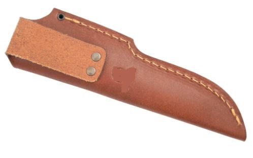 De schede is robuust gestikt en gemaakt van 3 mm dik cognackleurig grof gelooid volnerf leder.