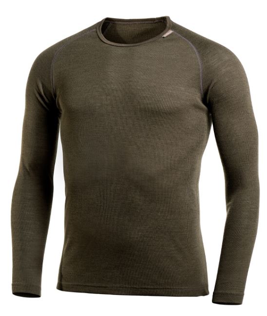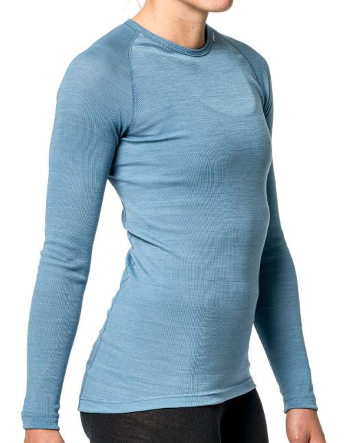 Woolpower LITE Crewneck T-shirt met lange mouwen. Dunne maar warme merino wol die niet kriebelt. Past zich aan aan de temperatuur. Binnen niet te warm, buiten heerlijk behaaglijk. Raglan mouwen voor meer beweeglijkheid (en geen hinderlijke naden wanneer u een rugzak draagt) en een langer rugpand.