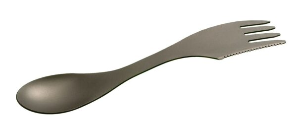 The Spork Titanium is made of titanium, one of the toughest alloys on the planet. Titanium is widely used in aircraft construction because of its lightness and extreme strength, yet it is also used in surgical and dental implants. Its high biocompatibility means that it is very non-toxic and is not rejected by the body.