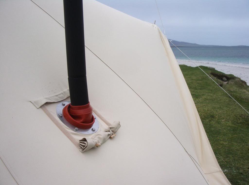 Schoorsteendoorvoer voor tenten. Bedoeld voor installatie in vuurbestendige of brandvertragend behandelde tenten en tipi’s. Er is ook een versie voor doorvoer door het dak van een schuur of huisje. Alles wat u nodig heeft wordt geleverd, behalve een schaar. Geschikt voor de Loki Stove, Frontier Stove, en de OZpig.