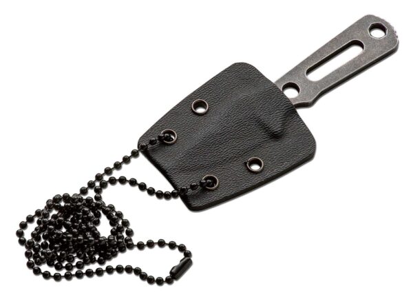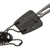 This series of small and incredibly practical Neck Knives will become a fixed component in your portfolio of cutting tools used every day. Small, light, sharp and incredibly versatile. The sharp blades made of 440 steel open blister packaging and cut through packing tape and fabric tape with ease. But the versatility of these “little friends” refers not only to their function but also to the multiple carrying options. These small friends can be carried in your pocket, around your neck with the ball chain, attached to the equipment or even to your belt. All knives are equipped with a high-quality Kydex sheath. The lightest model in the series. Has no handle scales and only weighs 18 g. Total 8.7 cm. Blade 3.4 cm. Thickness 2.8 mm.