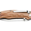 Het vlakgeslepen lemmet van lang scherp blijvend 440B staal en is fijn gesatineerd en met één hand te openen door middel van de duimsteun.