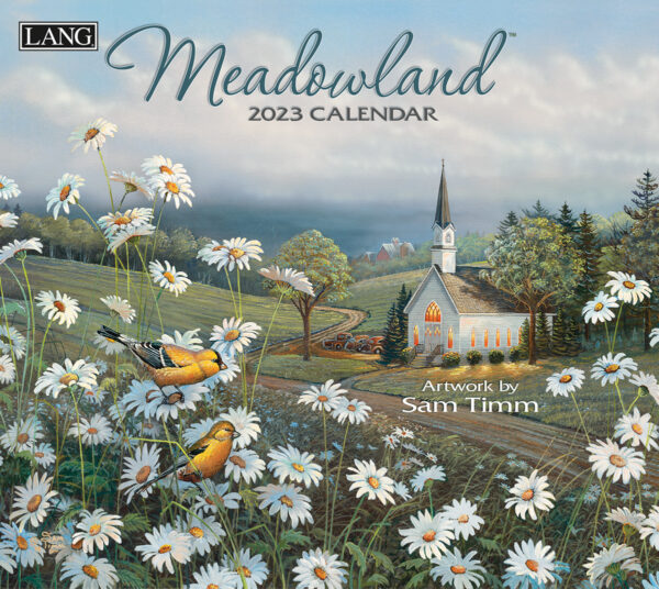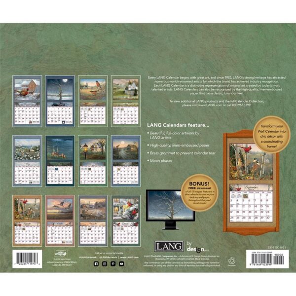 Amerikaanse Lang kalender. LANG-wandkalenders hebben maandelijkse full colour afbeeldingen, elegant linnen reliëfpapier en een koperen oogje om op te hangen.