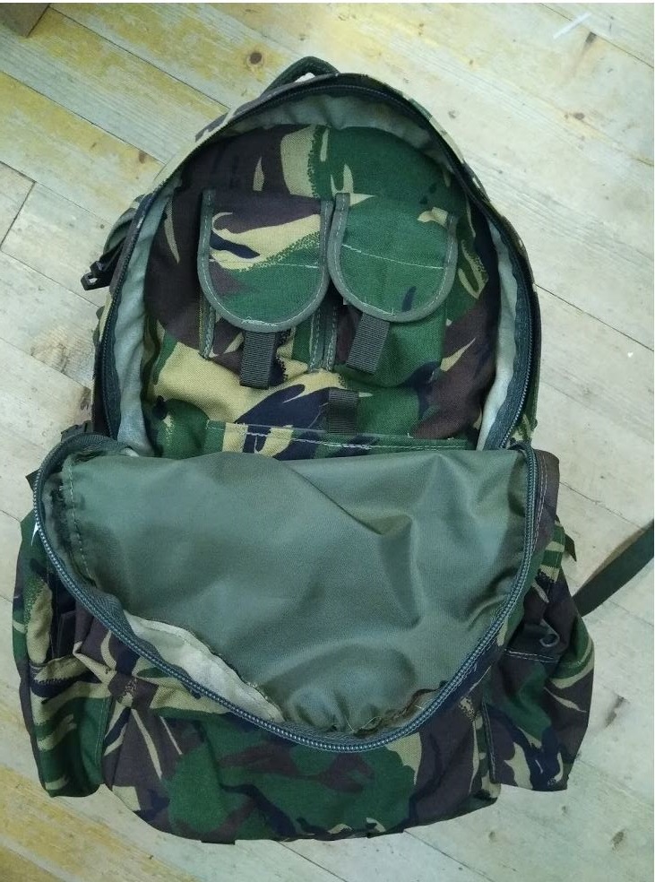 Groot voorvak, twee grote zijvakken, waarvan 1 met een verborgen holster en magazijntas.