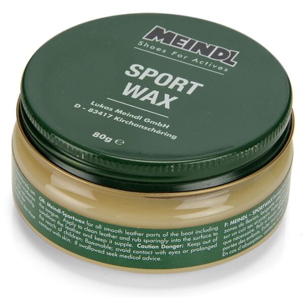 Meindl SportWax is een ideaal onderhoudsmiddel op basis van natuurlijke bijenwas dat leren schoenen en laarzen in topconditie houdt. Vooral de schacht en de vouw- en buigzones dienen regelmatig ingevet te worden. Voorkomt uitdrogen van het leer, houdt het soepel en waterafstotend. Tast het ademend vermogen niet of nauwelijks aan. Ook geschikt voor Gore-Tex schoenen.