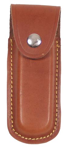 Leren mesfoedraal met drukknop – Past aan riemen en koppels tot ca. 6 cm breedte – Afmetingen buitenkant: ca. 13,5 x 6 x 3 cm (H x B x D) – Binnenafmetingen: ca. 11 x 4 x 1,5 cm (H x B x D) – Materiaal: 100% leer