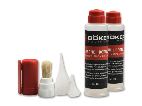 Deze speciale messenreiniger van Böker reinigt en ontvet zelfs sterk vervuilde onderdelen van verschillende materialen. Het heeft een uitstekend oplossend vermogen voor het verwijderen van zware vervuilingen, zoals vetten, rubberstrepen, oliën, lijmresten en pasta’s.