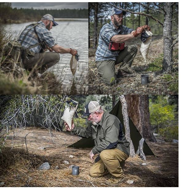 De Millbank waterfilterzak maakt het mogelijk om water voor consumptie voor te bereiden.