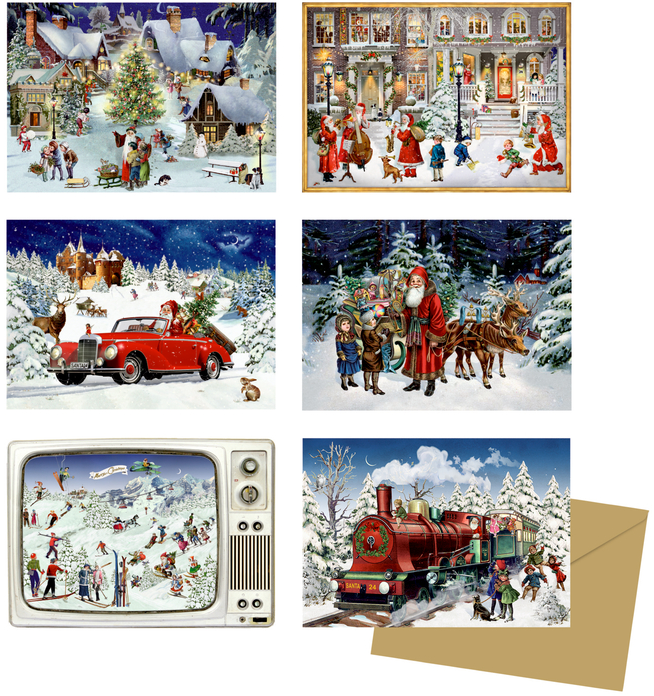 Leuke kleine adventskalender wenskaart met envelop. Afmetingen: 6 x 8,5 cm Dubbele wenskaart met glitters.
