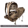Features: Hip belt with zippered pockets; Durable, non-slip handle; Main pack sack equipped with emergency carrying handle; Hydration system compatible; Integrated rain cover inside the bottom compartment; Subdivided into 7 separate pockets; Frontloader with two large main compartments; Six antenna ports into the main and front pockets; Detachable rear panel with aluminium frame (can be shaped individually); MOLLE system on both sides and front pocket.