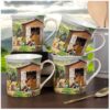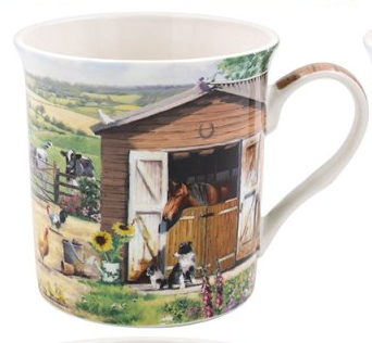 Mooie porseleinen mok ‘boerderij’. Mag in de vaatwasser. Bij afname van vier mokken een mooie bijpassende doos kado,