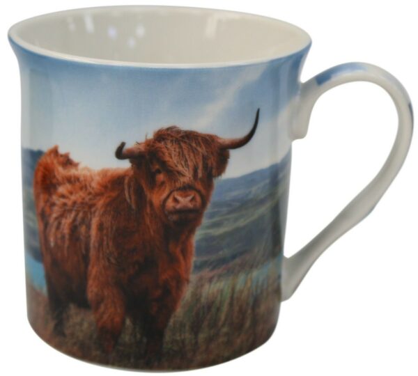 Keramische koffiemok met afbeelding van een Schotse Hooglander rund. Afwasmachine geschikt.