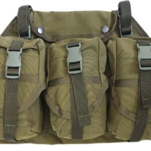 Combat Load Carrying System – Vest MAS Alfa van CombatKit. Past goed over het scherfwerend vest. Sluit met een stevige rits, maar is door de snelgespen aan de zijkant snel van een gewonde man af te halen. Verstelbare schouders. Greep op bovenzijde achterpand om de man aan weg te kunnen slepen.