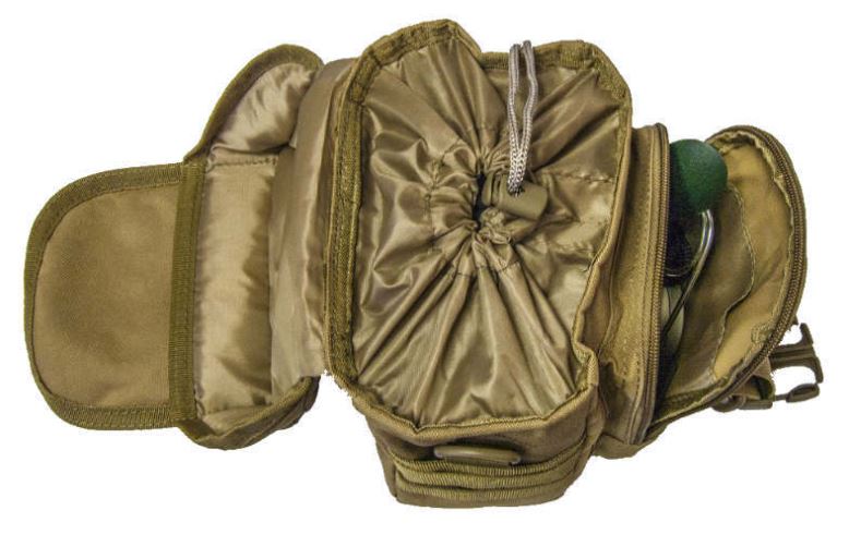 Pathfinder Molle draagtas, een compacte maar ruime schoudertas. Ideaal voor bijvoorbeeld de Pathfinder RVS veldfles kookset. De tas heeft een verstelbare schouderband, een trekkoord sluiting voor het hoofdvak, MOLLE bevestiging achter en is gemaakt van slijtvast 600D polyester met polycarbonaat binnenvoering.