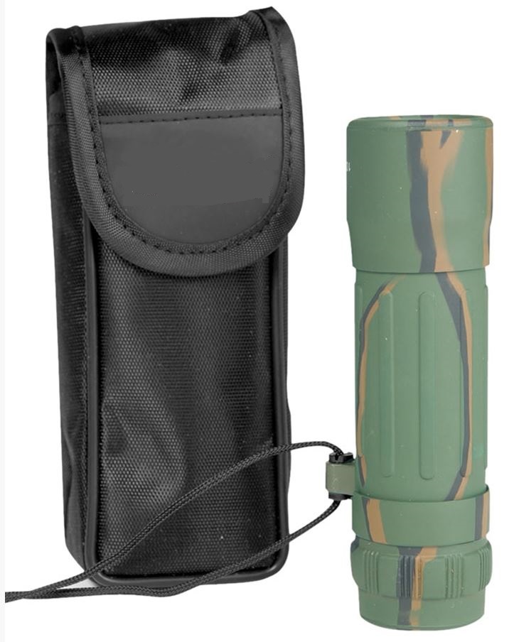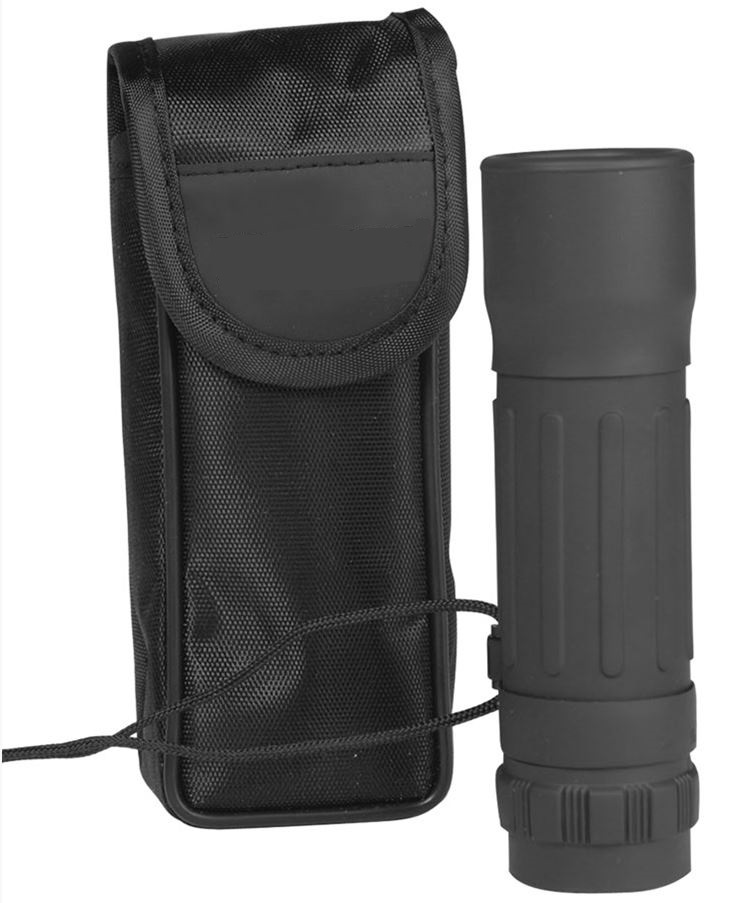 Monoculair 10 x 25. Klein en licht genoeg om in een jaszak mee te nemen. Vergroot maar liefst 10x. Het glas is gecoat tegen reflectie. Gerubberd. Kan met zijn meegeleverde foedraal ook aan de broekriem gedragen worden.