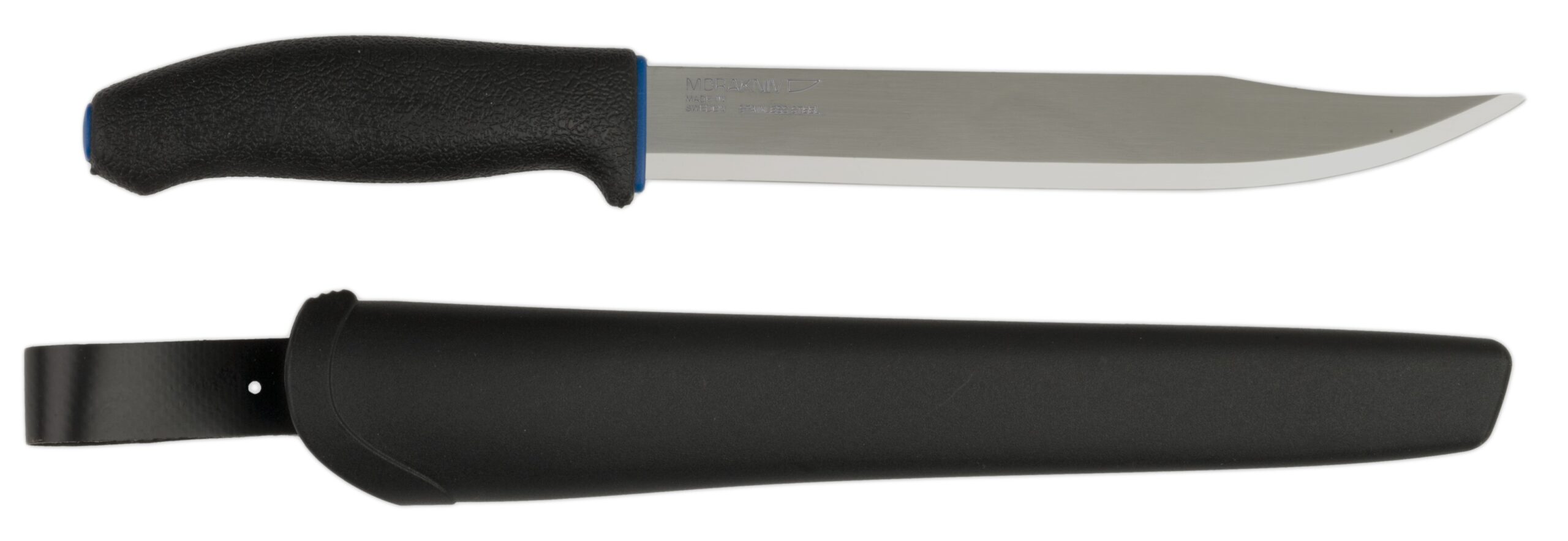 Morakniv Allround 749. Een lang mes, deze Mora Allround 749, zelfs nog langer dan de Mora Pathfinder. RVS uitvoering. Rubber greep. Kunststof schede kan aan de broekriem gedragen worden, maar ook aan een knoop worden gehangen.