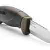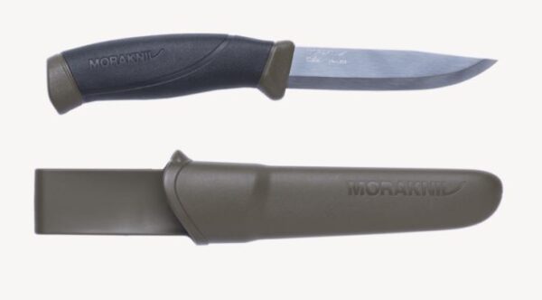 De Mora Companion is verkrijgbaar in 2 kwaliteiten: met carbon lemmet en met een RVS lemmet. Deze versie heeft het RVS lemmet. Voorzien van een slipvaste kraton rubber greep.die ongelooflijk goed in de hand ligt.