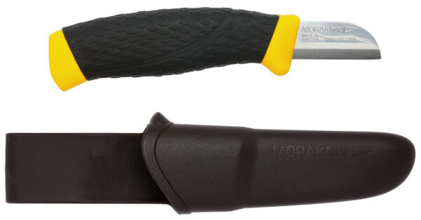 Mora Craftline Top Q Electrician. Mora mes met kort lemmet zonder punt. Ontworpen voor electriciens. Met zijn stompe punt ook geschikt voor niet te kleine kinderen. Let op: vlijmscherp!