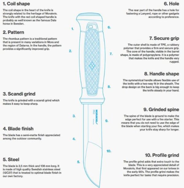 De Mora Kansbol heeft de flexibiliteit van een lichtgewicht mes en de sterkte van een robuuster model. Deze combinatie maakt het mes een echt all-round mes en een betrouwbare partner. Het mes kan worden gebruikt met een vuurstarter.