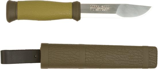 Een eersteklas allround mes met een profielgeslepen lemmet van koudgewalst speciaal roestvrij staal van Sandvik en een slipvaste greep. – Lemmetlengte 115 mm. – Kunststof schede met een flexibele leren riem.