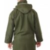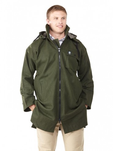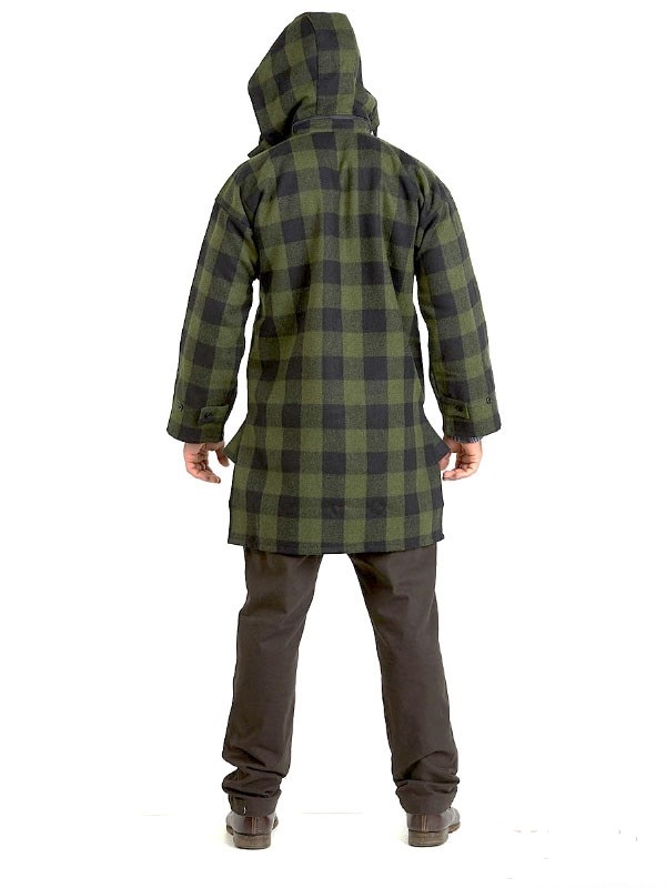 Dezelfde vervilte wollen kwaliteit, 475g p. m², als het Origininal Hooded Bushshirt, maar nu met een doorlopende rits, een afneembare capuchon, een borstzak en twee steekzakken. Wollen voering.