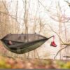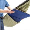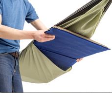 Amazonas Moskito Traveller Thermo hangmat. Super lichtgewicht en toch met alles er-op en er-aan: de hangmat heeft een dubbele bodem waartussen je een slaapmat ( max. 240 x 64cm) kunt schuiven. Ideaal voor de wat koudere nachten. De klamboe is geheel dicht en sluit met een rits. Zowel klamboe als hangmat zijn behandeld tegen insecten, of dat nu muggen, teken, mieren of wat dan ook zijn. Deze finish blijft tot 50 wasbeurten zitten en is volkomen veilig voor mensen. De hangmat kan ook zonder het muskietennet gebruikt worden.