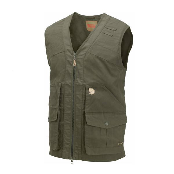 Licht en toch robuust functionele jachtbodywarmer uit het sterke G-1000 Silent weefsel. Versterkte schouders. Uitneembare neopreen mat die de terugslag bij het schieten opvangt. Uitklapbare tas voor patronen. 2 Gevoerde zakken. Poacher\’s bag.