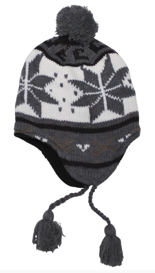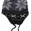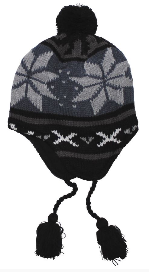 Gebreide muts met leuke pompon en kwastjes. – Zachte en warme fleece binnenkant – Bedekt de oren – Materiaal: 100% polyacryl – Voering: 100% polyester