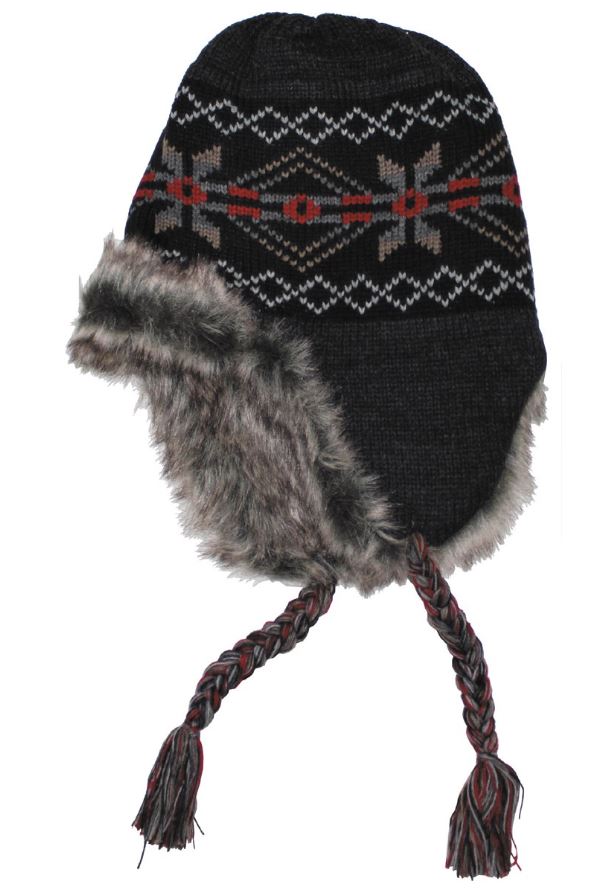 Gebreide muts met pompon en kwastjes. Gevoerd met imitatiebont. Met warme oorwarmers Materiaal: 100% polyacryl Voering: 100% polyester