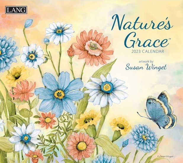 Amerikaanse Lang kalender. LANG-wandkalenders hebben maandelijkse full colour afbeeldingen, elegant linnen reliëfpapier en een koperen oogje om op te hangen.