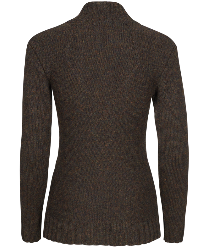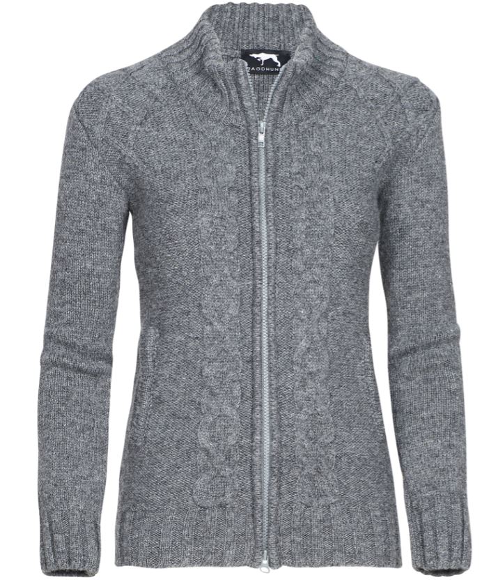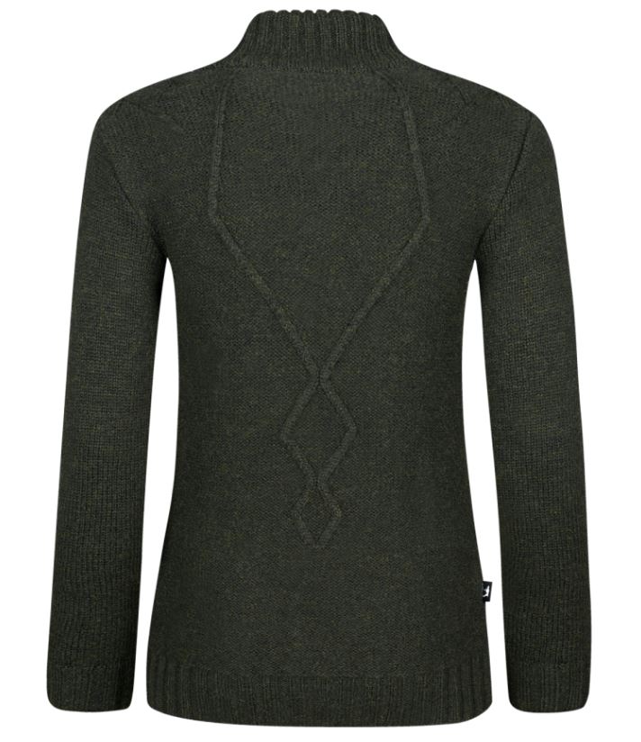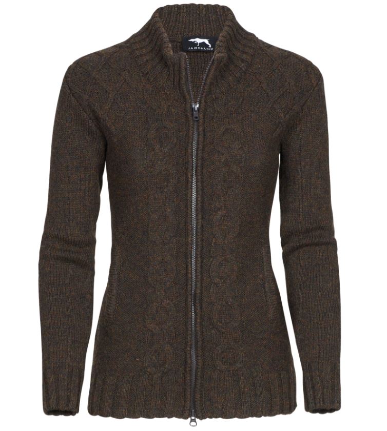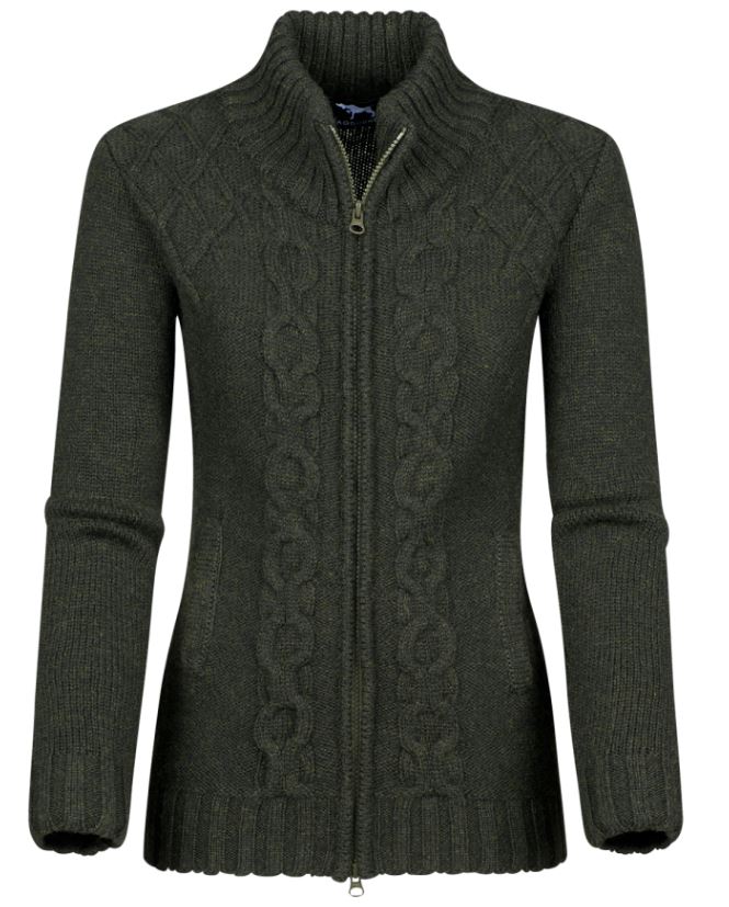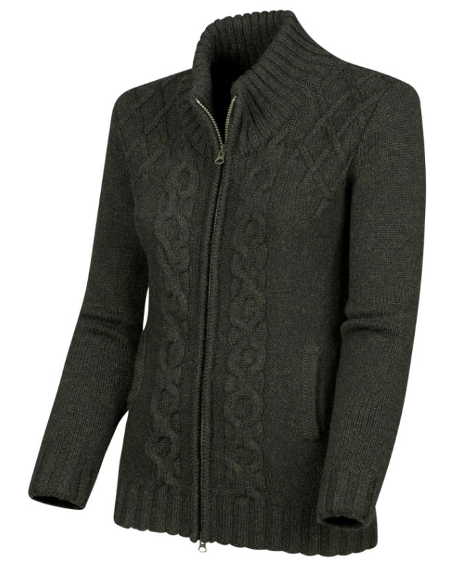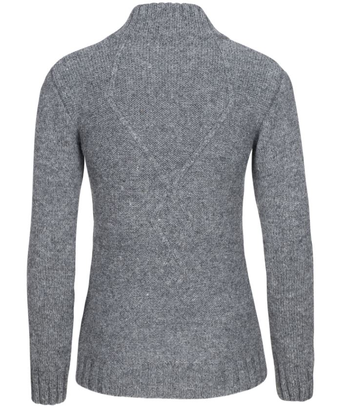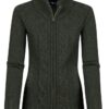 Nauders damesvest. Prachtig gebreid vest met kabels, opstaande kraag, accent op de schouders, steekzakken, mouwen en zoom dubbel gebreid.